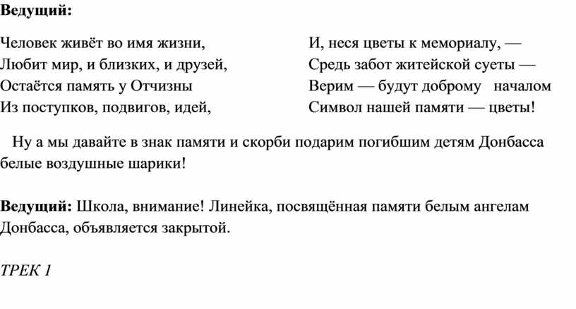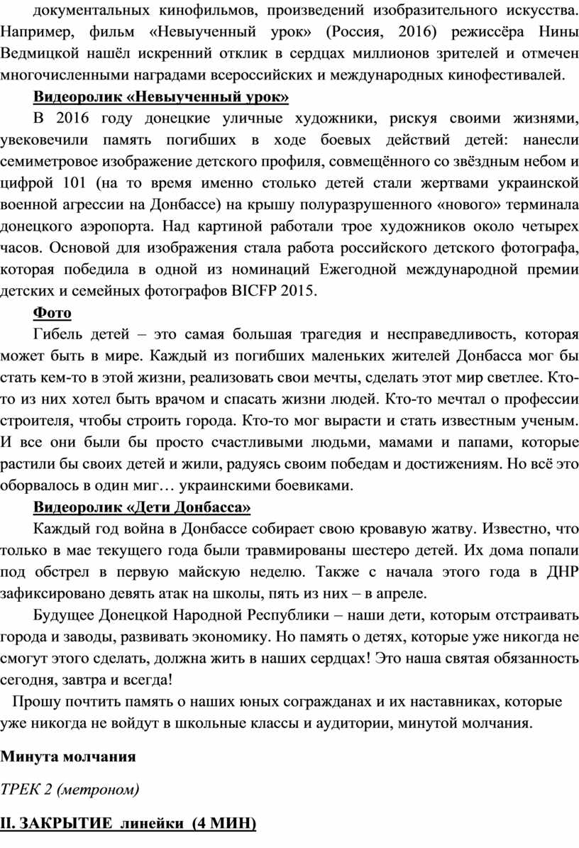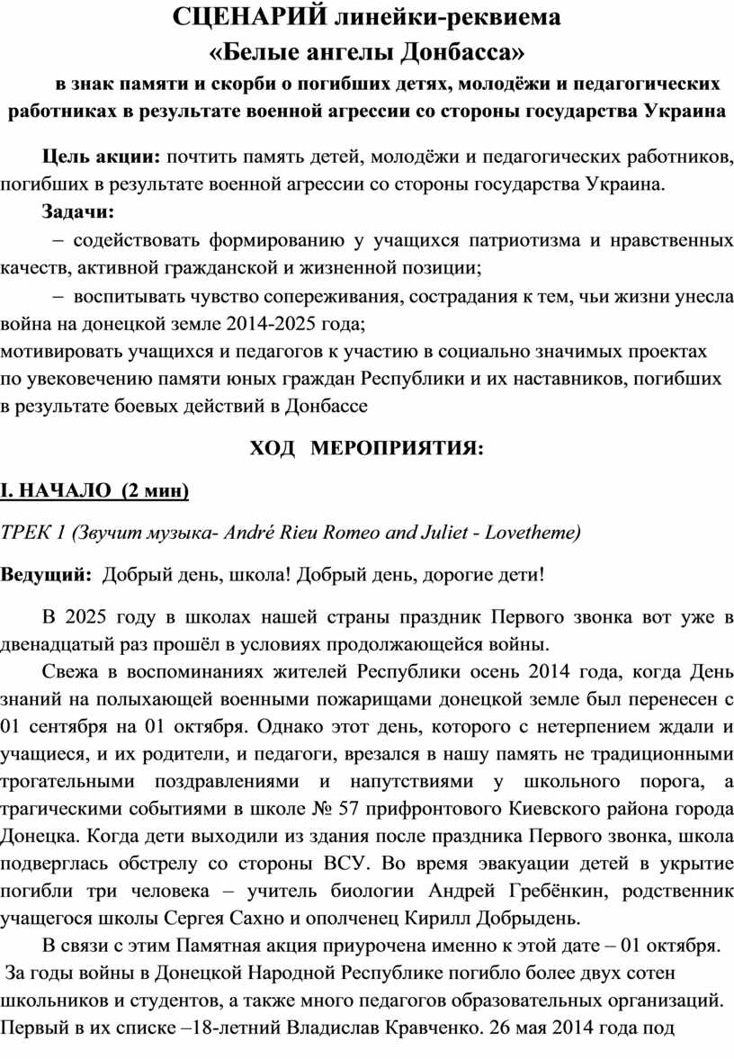 Ведущий: Школа, внимание! Линейка, посвящённая памяти белым ангелам Донбасса, объявляется закрытой.