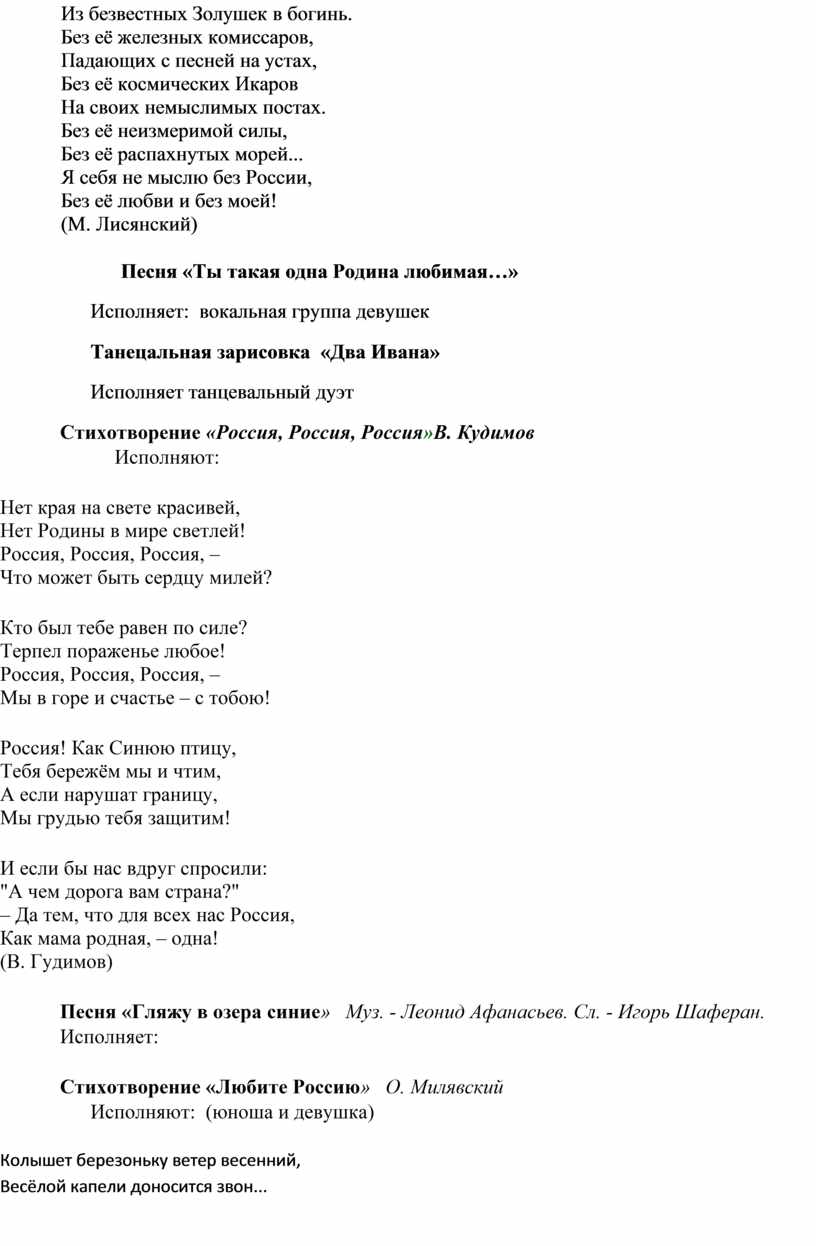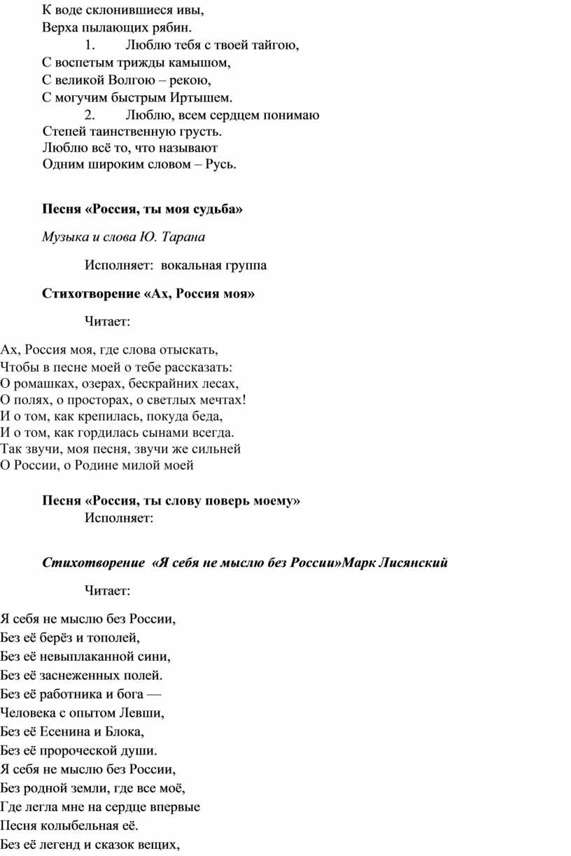 Стихотворение «Я себя не мыслю без России»Марк Лисянский