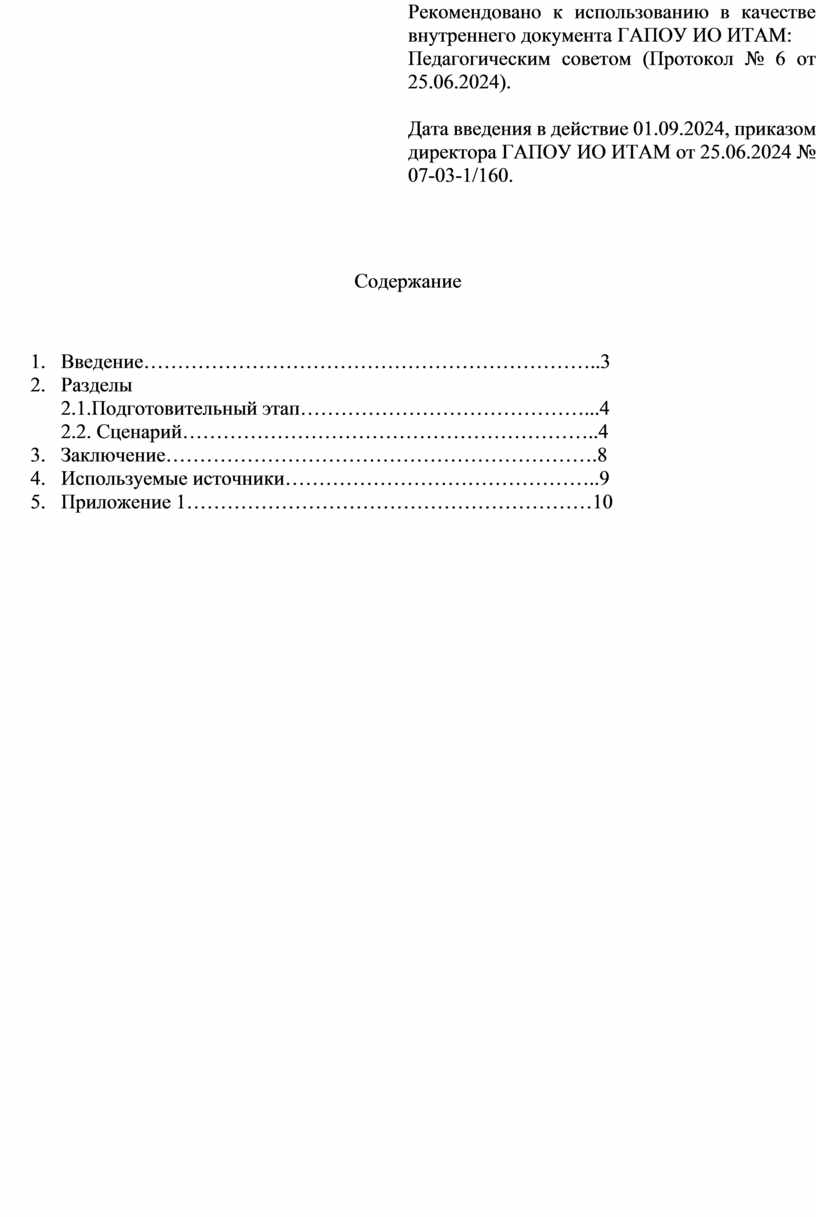 Дата введения в действие 01.09.2024, приказом директора ГАПОУ ИО ИТАМ от 25.06.2024 № 07-03-1/160.
