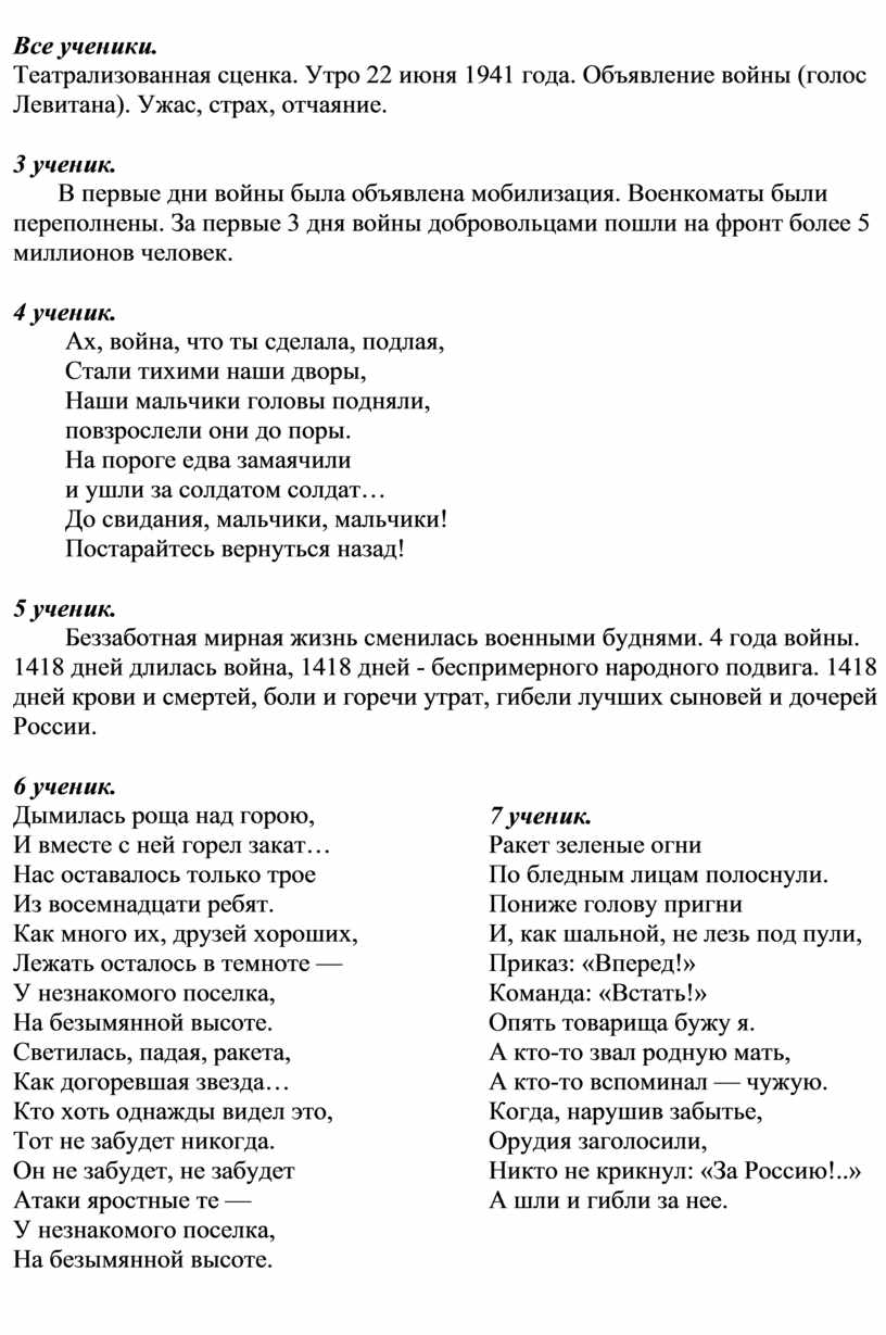 Театрализованная сценка. Утро 22 июня 1941 года. Объявление войны (голос Левитана). Ужас, страх, отчаяние.