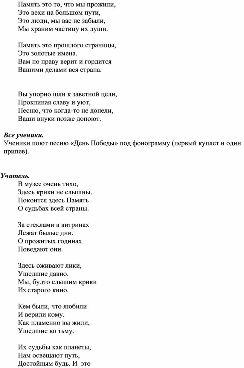 Ученики поют песню «День Победы» под фонограмму (первый куплет и один припев).