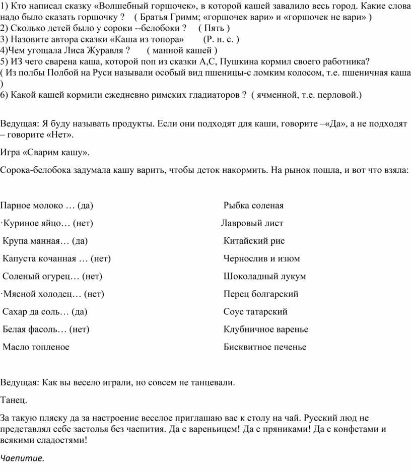 Ведущая: Ребята, а ведь каша исконно русское блюдо.