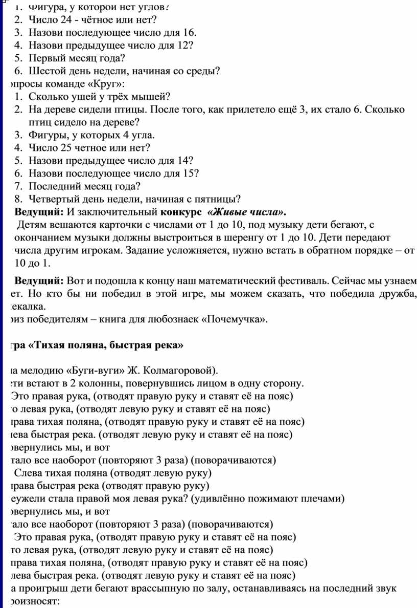 Ведущий: Действительно, математика окружает нас всюду: в книгах, играх, на кухне, на улице, в лесу… Без математики не обойдется ни одно дело. Думаю, что после игры вы еще больше полюбите математику.