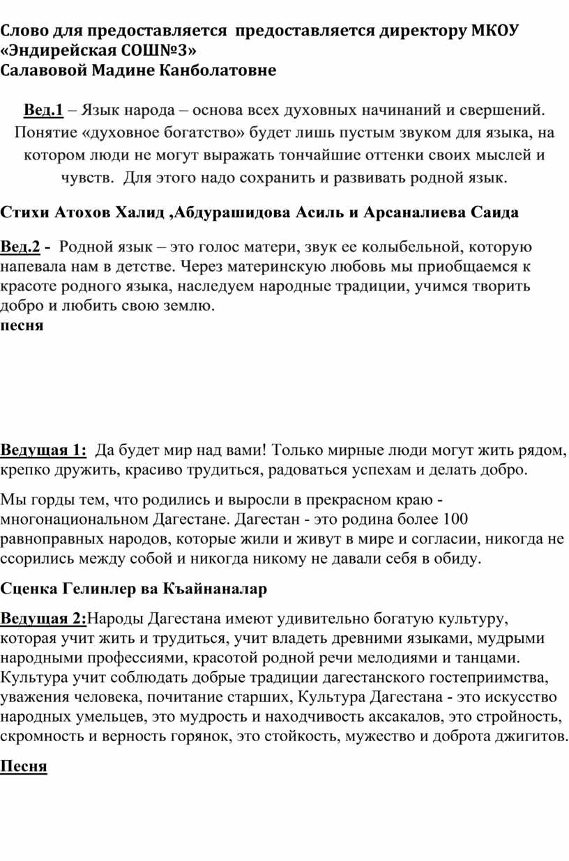 Вед.1 – Дагестан не просто Страна гор. Прежде всего, это страна многочисленных языков и народов. Язык, это достояние народа, его духовное богатство.