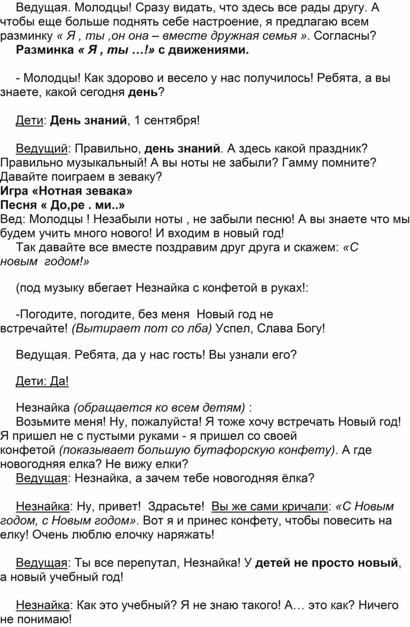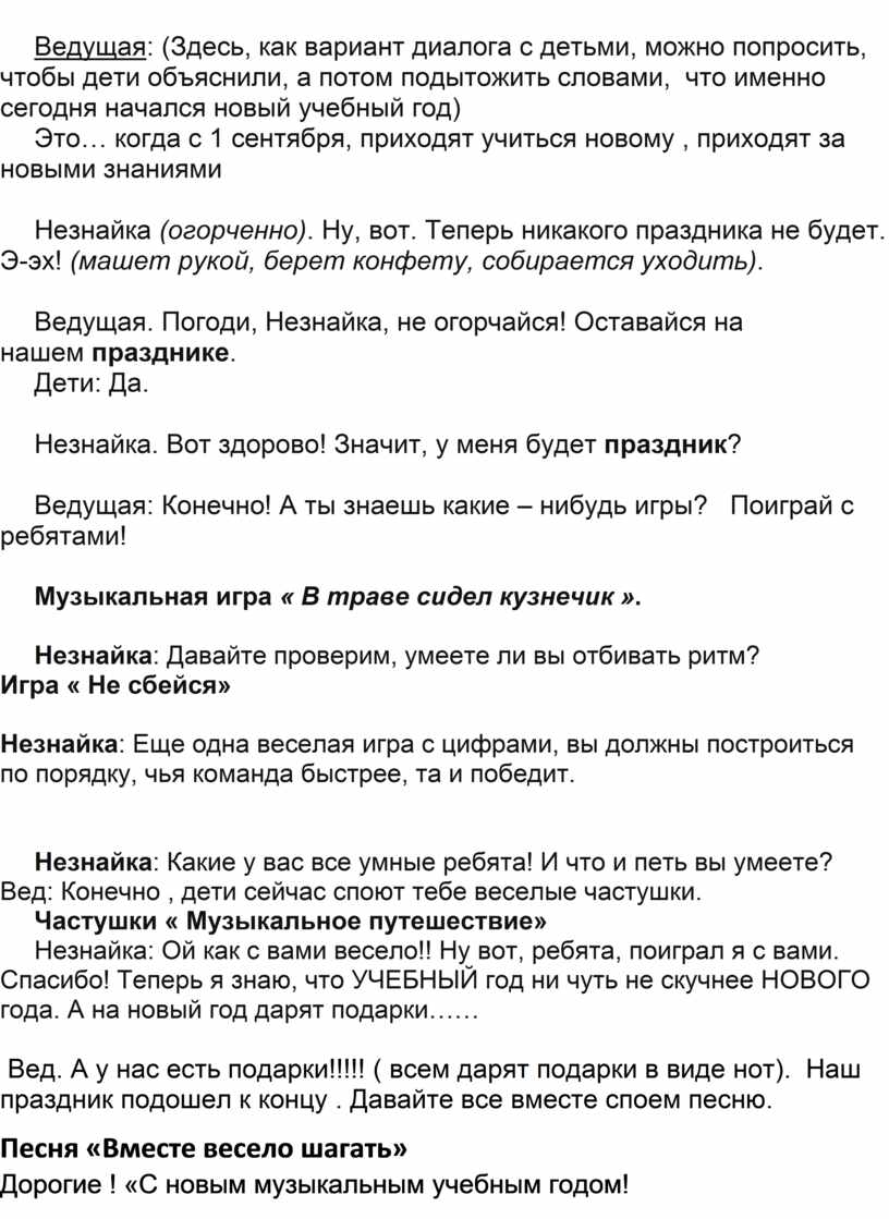 Ведущая: Ты все перепутал, Незнайка! У детей не просто новый, а новый учебный год!