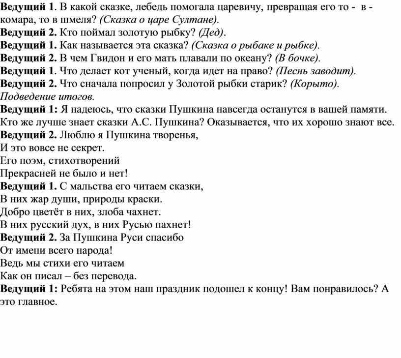 Сценарий мероприятия ко дню рождения А. С. Пушкина