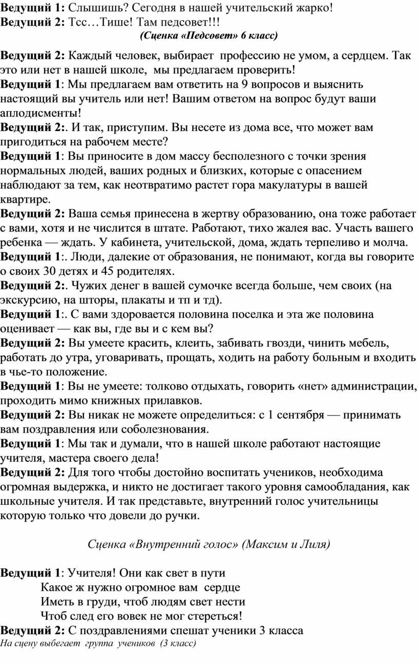 Ведущий 2: Тсс…Тише! Там педсовет!!!