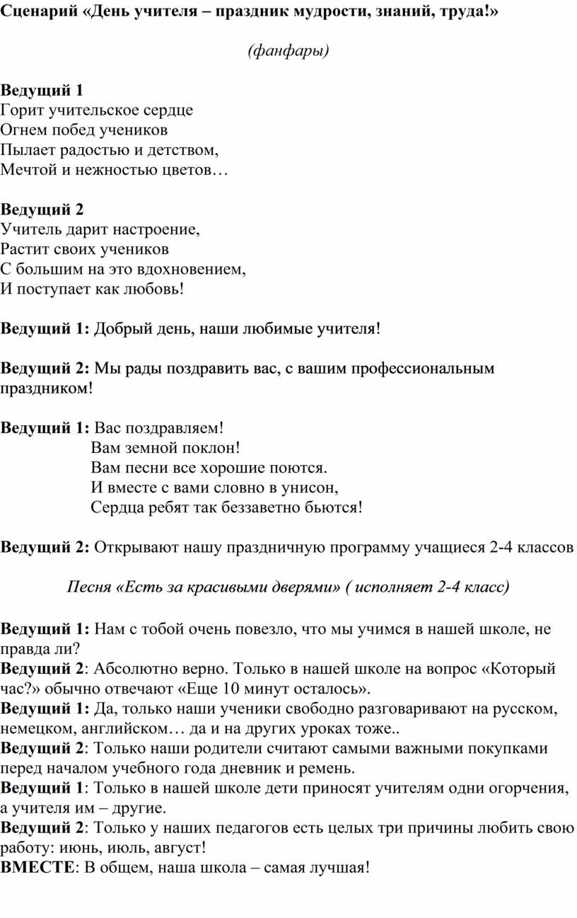 Сценарий «День учителя – праздник мудрости, знаний, труда!»