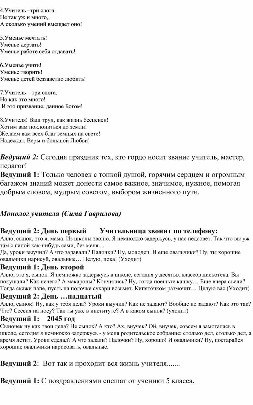 Ведущий 2: Вот так и проходит вся жизнь учителя.......