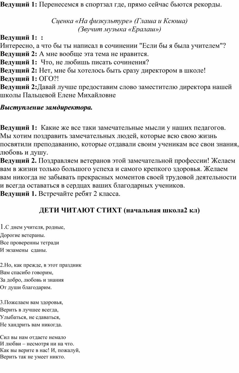 Ведущий 2:Давай лучше предоставим слово заместителю директора нашей школы Пальцевой Елене Михайловне
