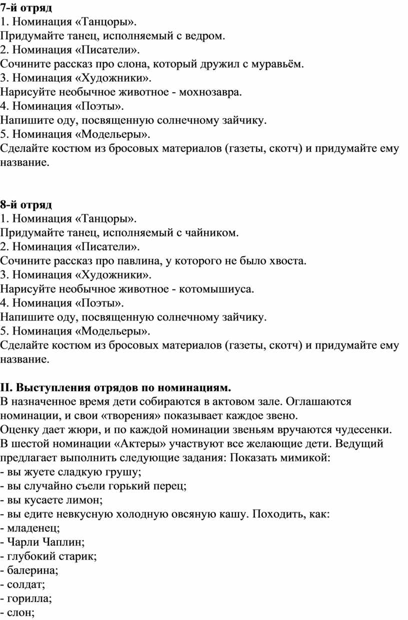 II. Выступления отрядов по номинациям.
