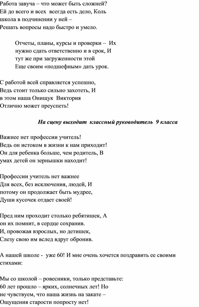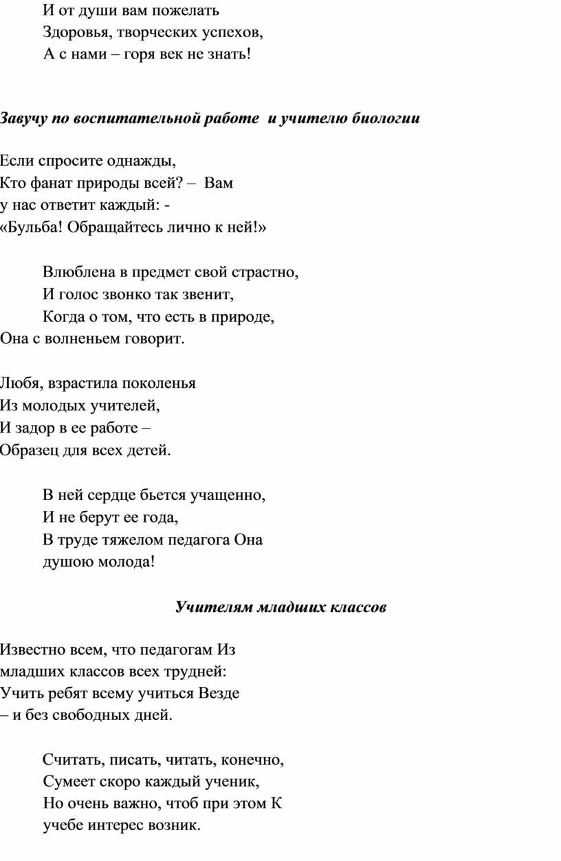 Празднуем его и мы в нашей школе. Пусть она не такая большая, но наши учителя каждый день с нами, учат нас быть умными и грамотными, но главное – учат быть настоящими людьми. И сегодня о каждом из них мы расскажем стихами.