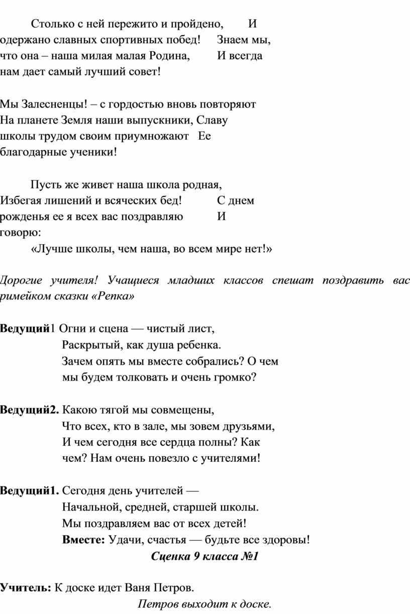 Зал украшен осенними листьями. На сцене – поздравления учителям от учеников всех классов, коллаж фото учителей школы со стихамикомментариями: