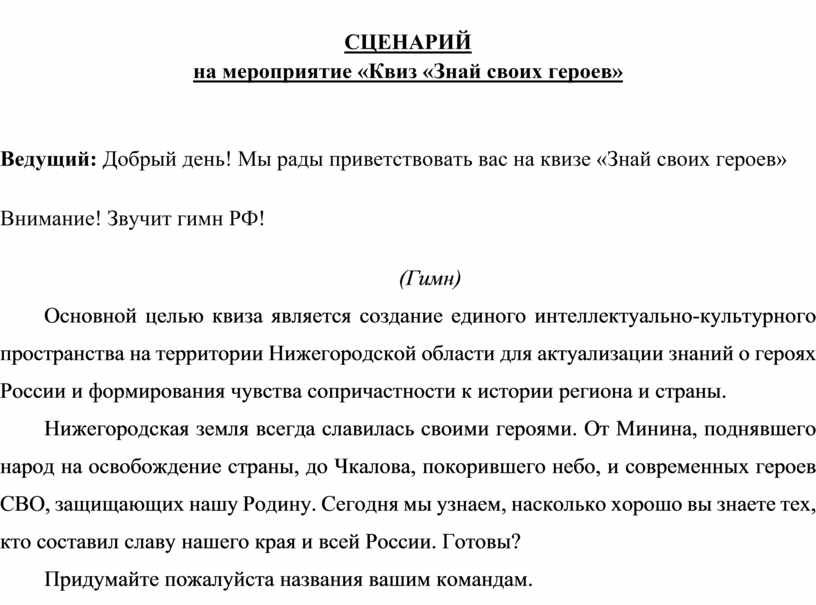 Ведущий: Добрый день! Мы рады приветствовать вас на квизе «Знай своих героев»