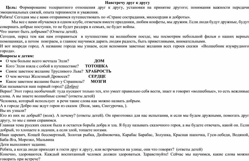 Цель: Формирование толерантного отношения друг к другу, установки на принятие другого; понимания важности передачи эмоциональных связей, опыта терпимости и уважения.