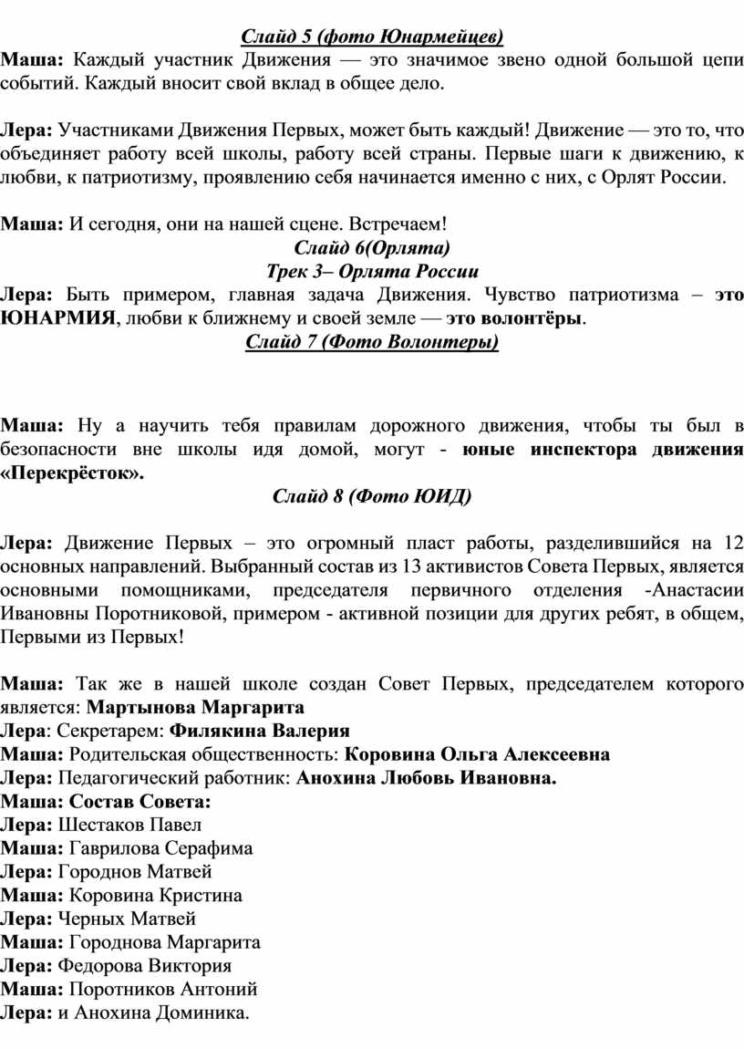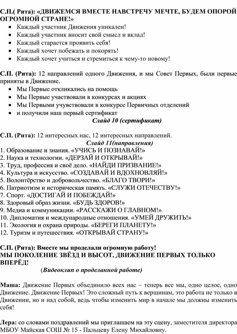 Маша: Так же в нашей школе создан Совет Первых, председателем которого является: Мартынова Маргарита