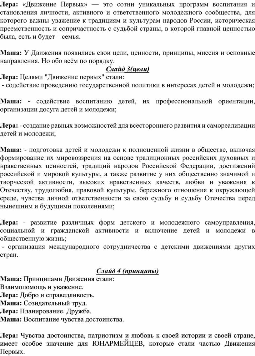 Лера: Общероссийское общественно - государственное движение детей и молодёжи Движение Первых! Ну или как мы привыкли говорить, о самом движении, просто - Первые!