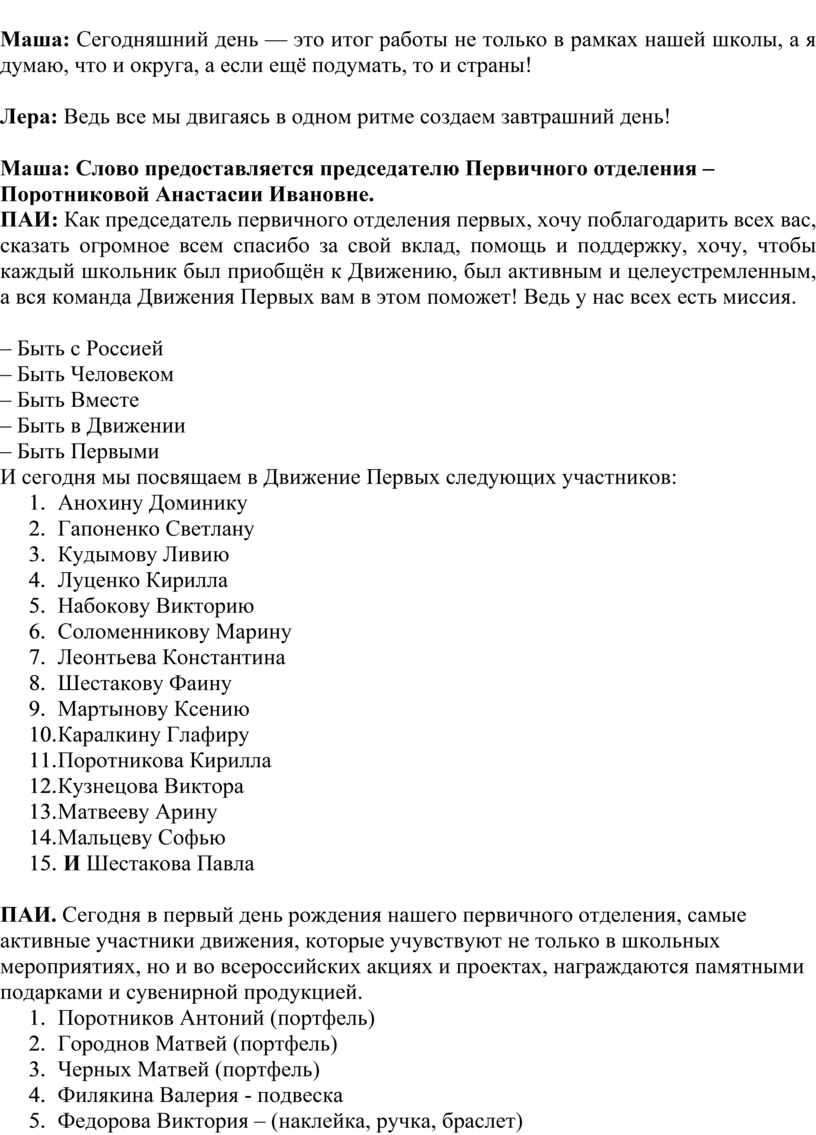 И сегодня мы посвящаем в Движение Первых следующих участников: