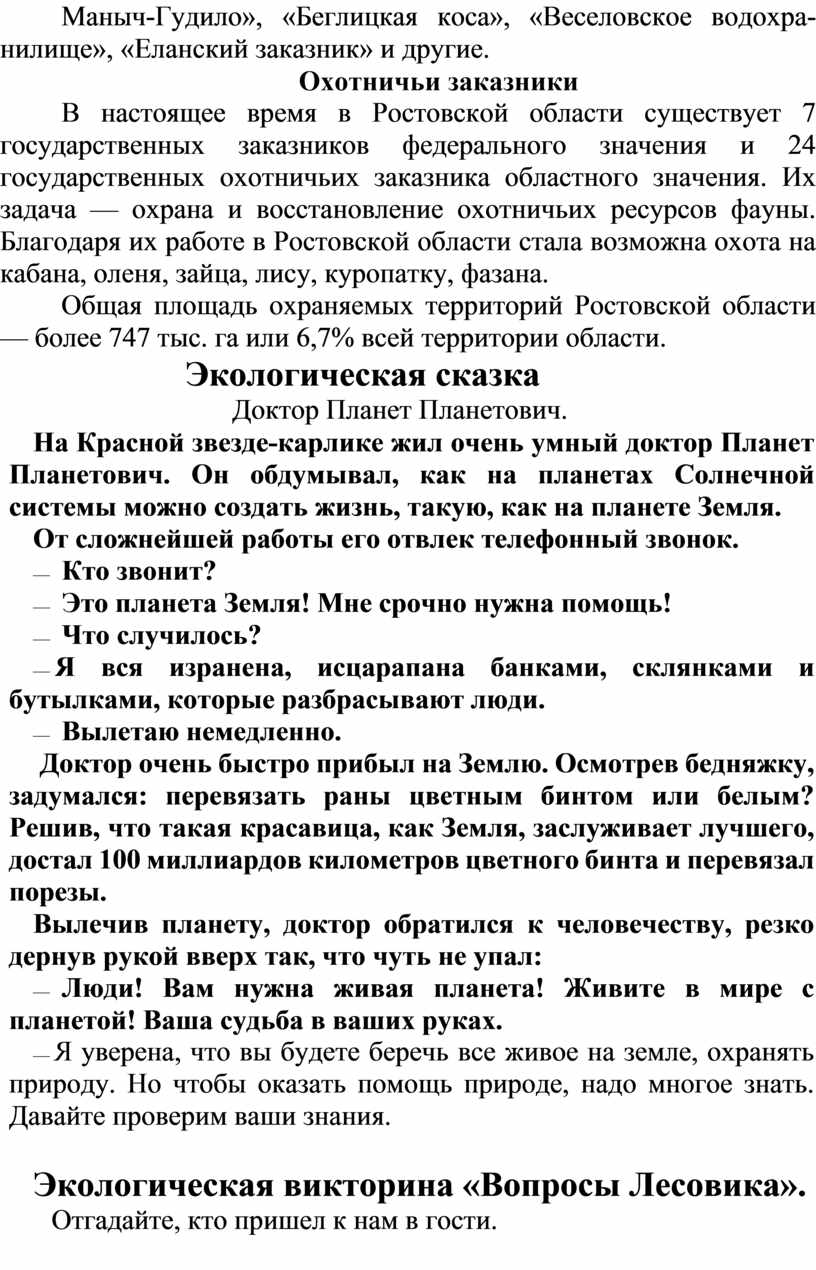 — Я уверена, что вы будете беречь все живое на земле, охранять природу. Но чтобы оказать помощь природе, надо многое знать. Давайте проверим ваши знания.
