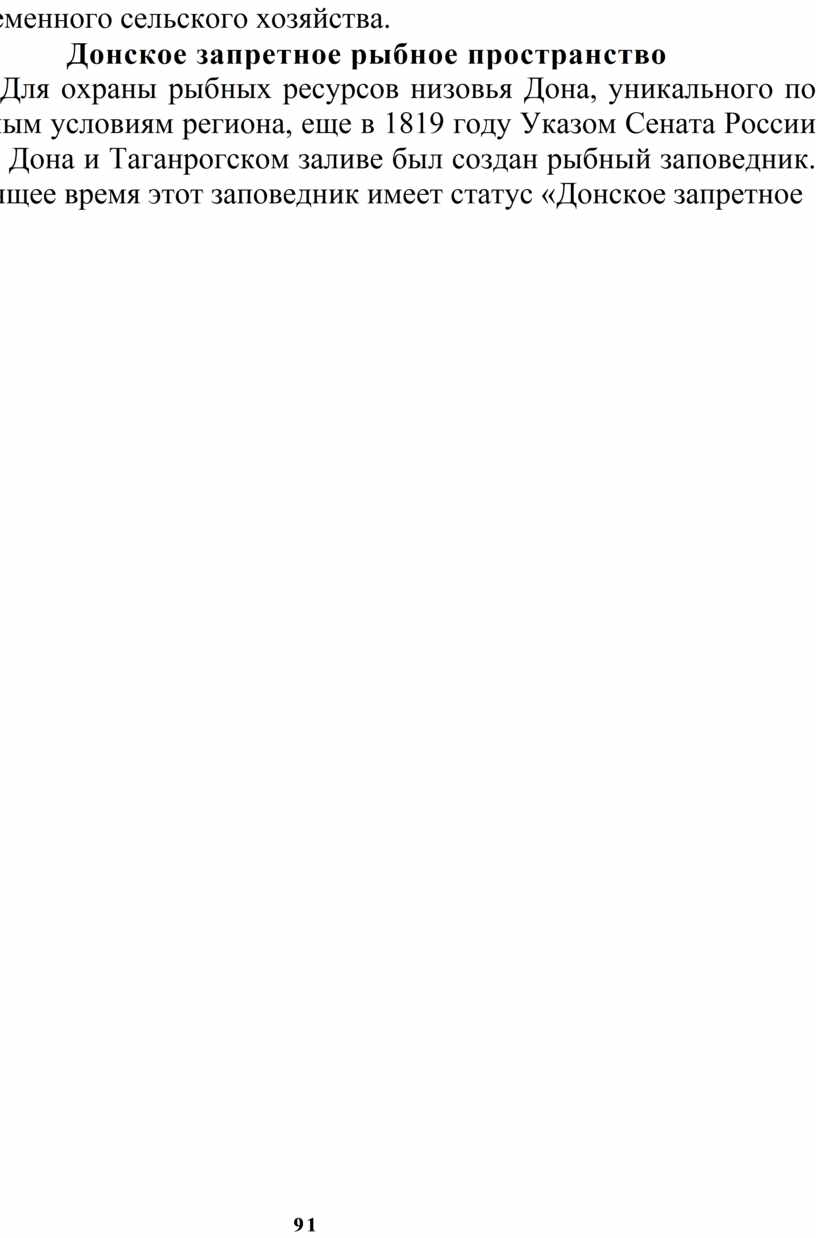 рыбное пространство» (68 тыс. га) и включает очень важную для воспроизводства рыбных запасов территорию — многочисленные гирла, рукава, протоки и ерики дельты Дона общей протяженностью около 500 км. Оно играет важную роль в сохранении рыбных ресурсов Дона и Азовского моря. Для более полного сохранения уникальных природных ресурсов дельты Дона ученые предлагают организовать здесь Донской природно-исторический заповедник.