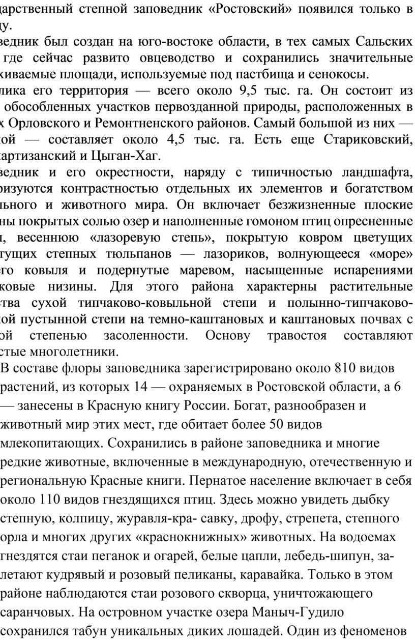 Вопрос о создании степного заповедника на Дону поднимался еще в 1911 году известным донским ботаником И.В. Новопокровским, однако первый в степной зоне Восточно-Европейской равнины — государственный степной заповедник «Ростовский» появился только в 1995 году.