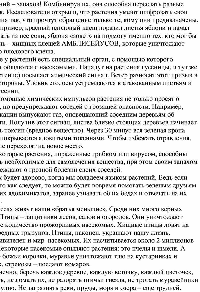 Как будет здорово, когда мы овладеем языком растений. Ведь если узнать его как следует, то можно будет вовремя помогать зеленым друзьям без всяких ядохимикатов, заранее узнавать об их бедах и отвечать на их просьбы.