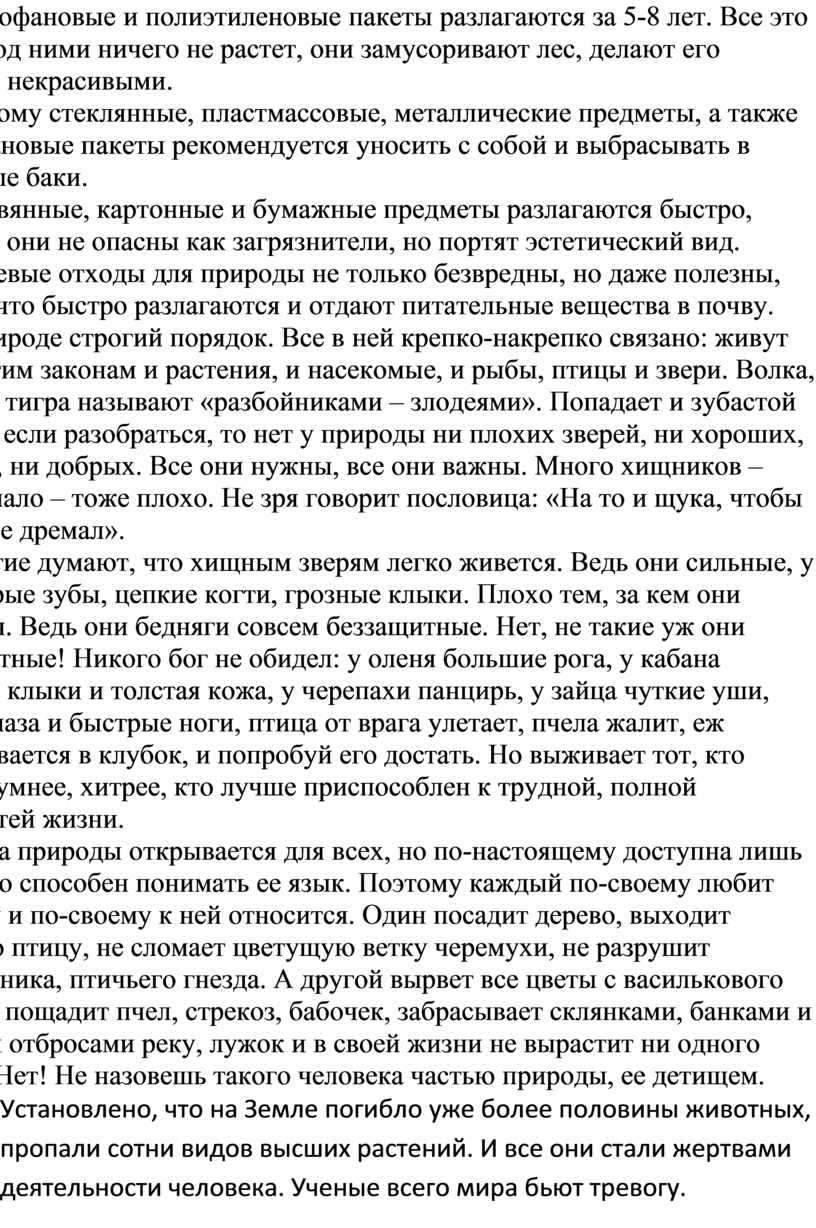 Однако порой и взрослые, и дети бездумно ведут себя по отношению к природе. Леса засорены отбросами, консервными банками, бутылками, тряпками – все это мешает естественному лесовозобновлению.
