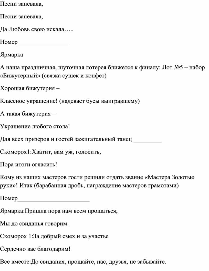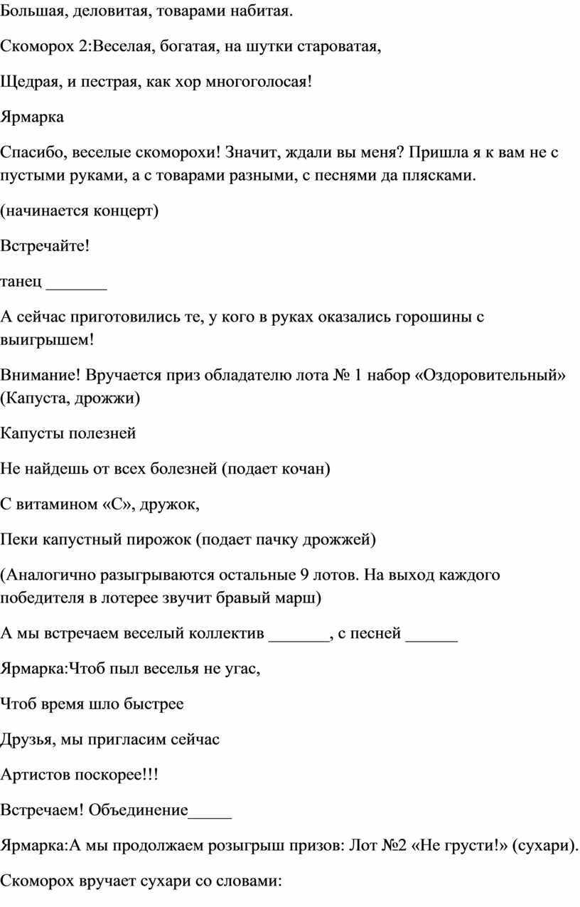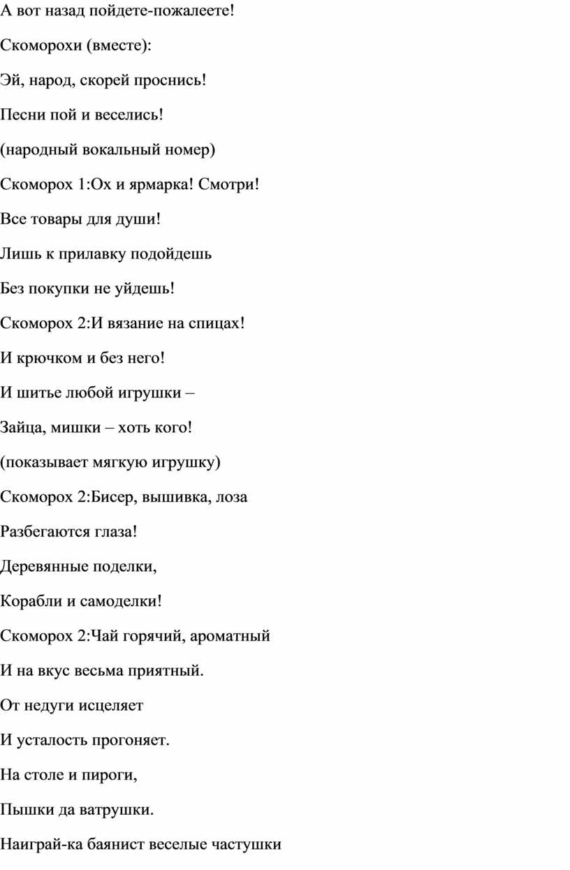 Спасибо, веселые скоморохи! Значит, ждали вы меня? Пришла я к вам не с пустыми руками, а с товарами разными, с песнями да плясками.