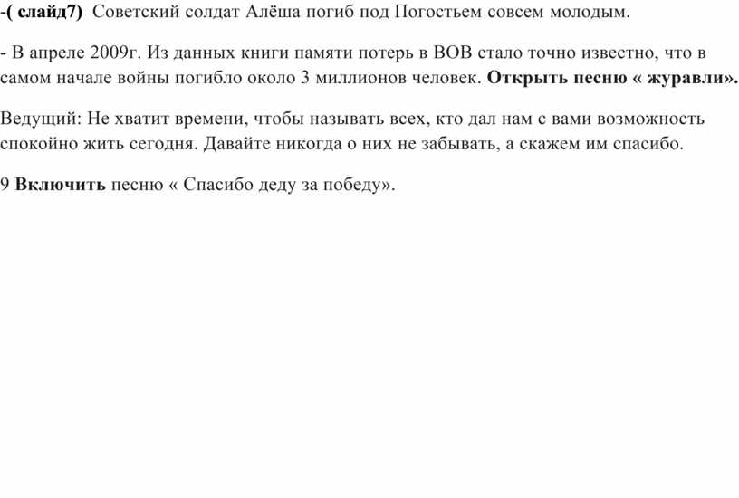 - В апреле 2009г. Из данных книги памяти потерь в ВОВ стало точно известно, что в самом начале войны погибло около 3 миллионов человек. Открыть песню « журавли».