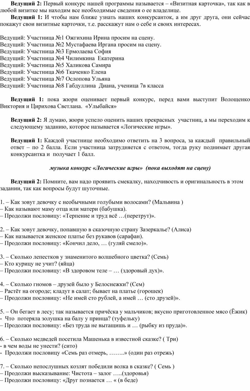 Сценарий конкурса