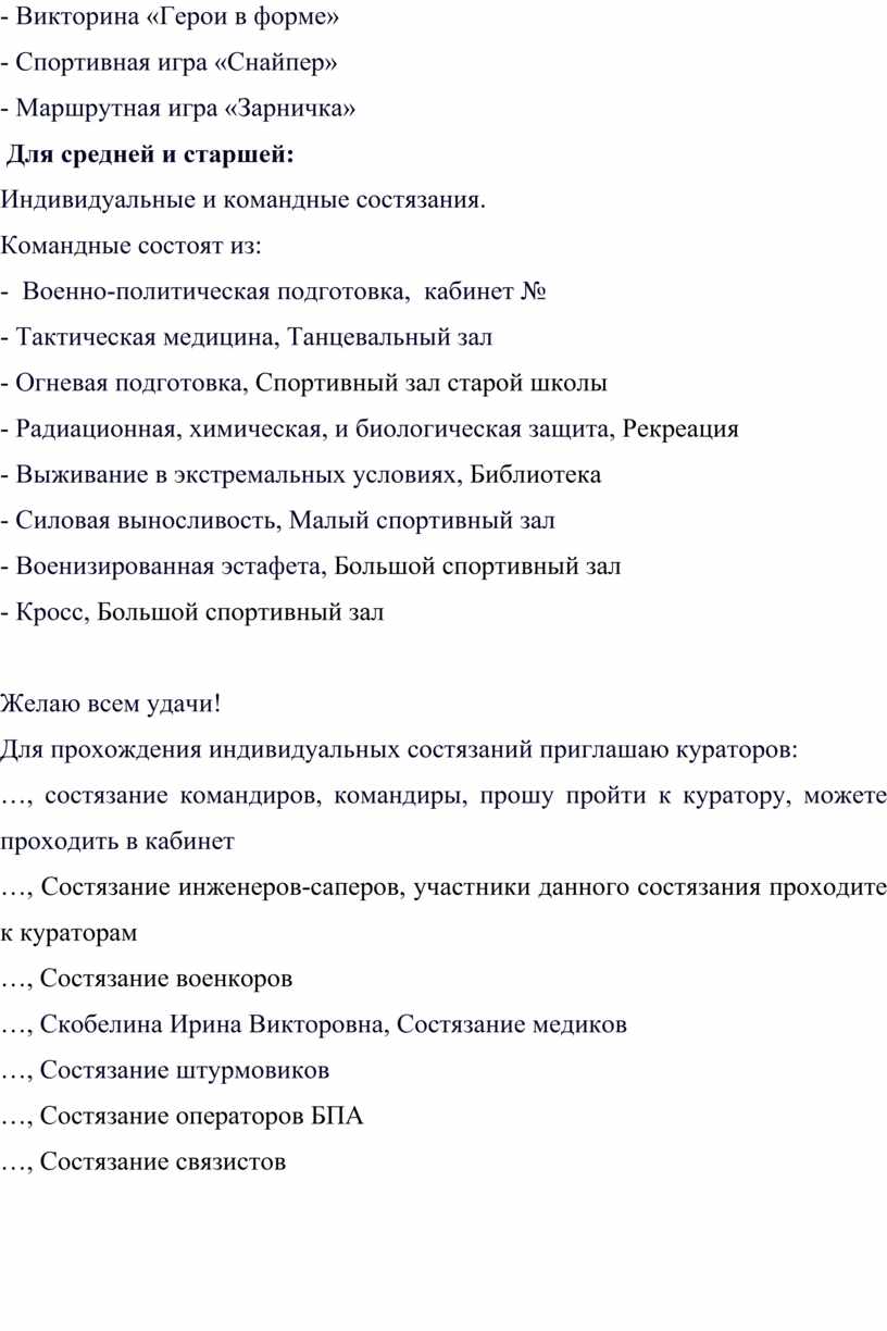 …, состязание командиров, командиры, прошу пройти к куратору, можете проходить в кабинет