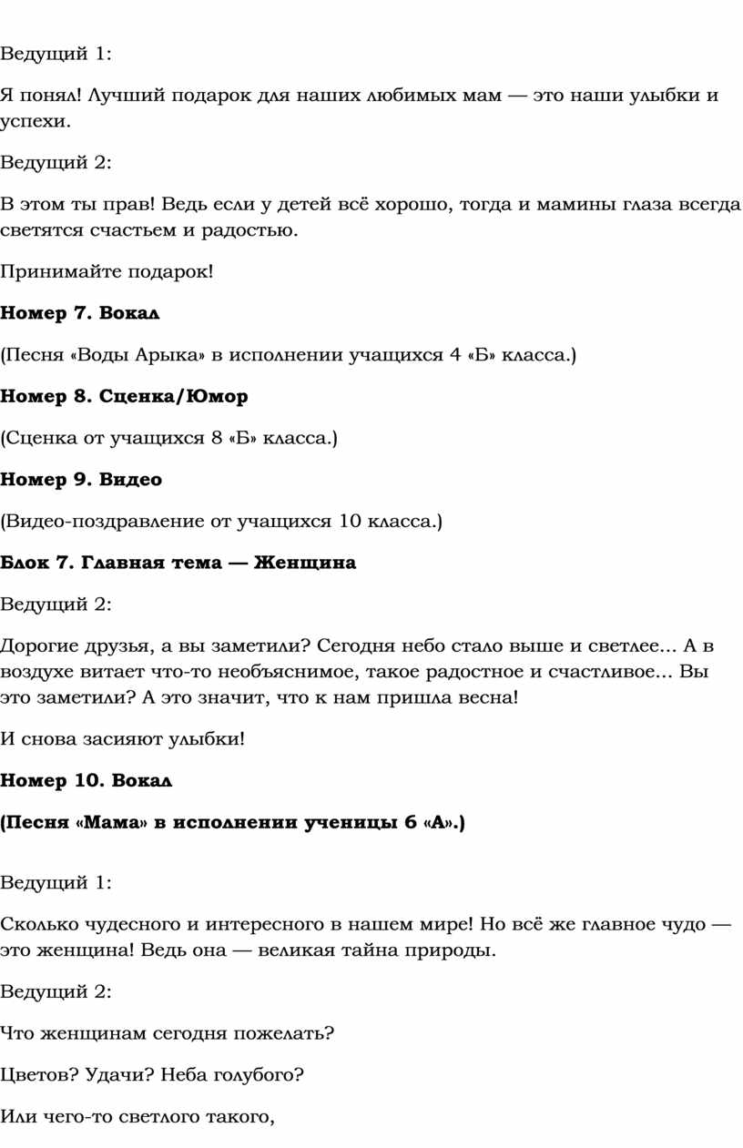 Ведущий 2: Дорогие женщины! Сегодня в ваш адрес было сказано много добрых слов! Пусть они звучат для вас не только сегодня.