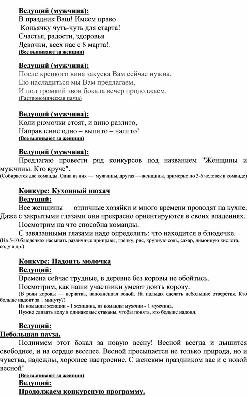 СЦЕНАРИЙ НА 8 МАРТА НА РАБОТЕ ДЛЯ ЖЕНЩИН С ЮМОРОМ И КОНКУРСАМИ