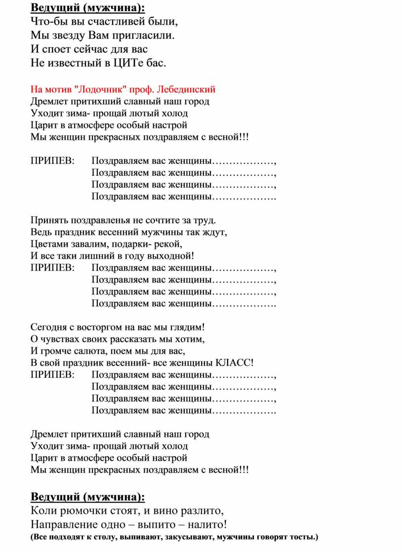 ПРИПЕВ: Поздравляем вас женщины………………,