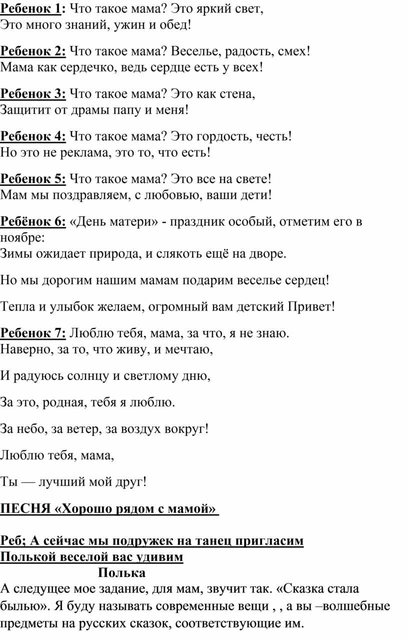 Ребёнок 6: «День матери» - праздник особый, отметим его в ноябре: