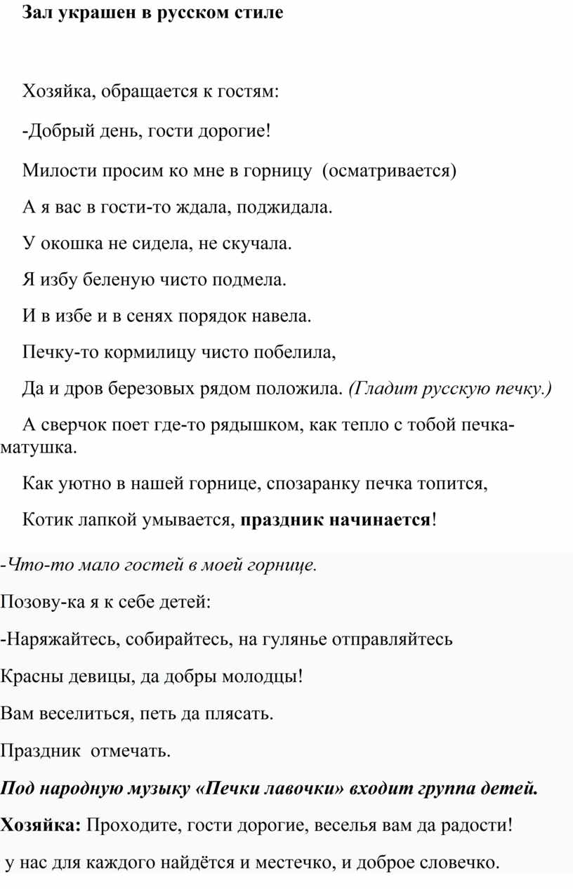 Хозяйка: Проходите, гости дорогие, веселья вам да радости!