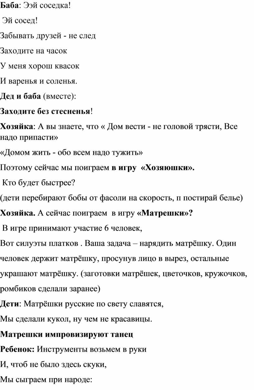 Поэтому сейчас мы поиграем в игру «Хозяюшки».