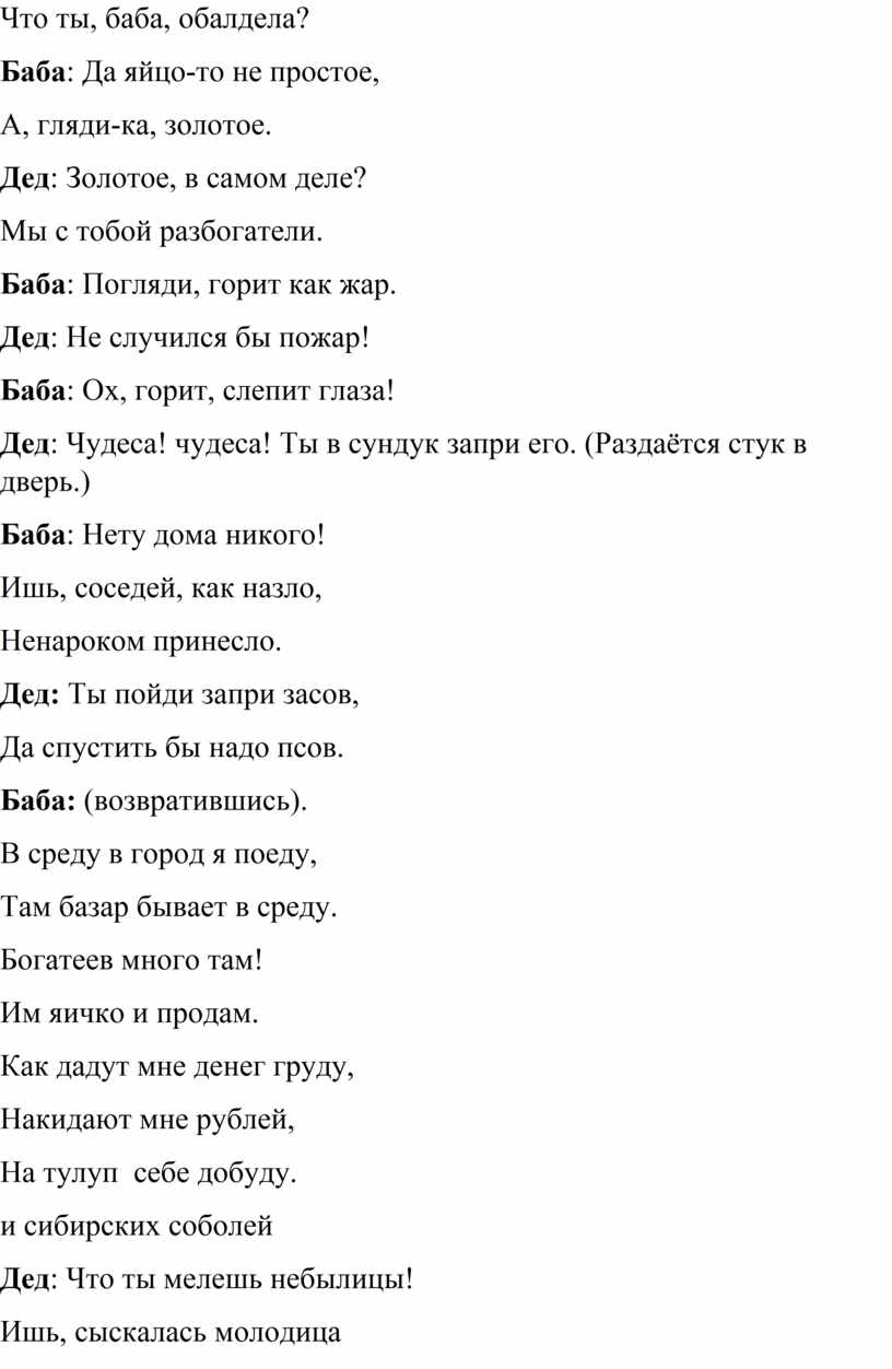 Баба: Ох, яичко покатилось,