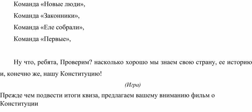 А теперь мы переходим к самой интересной и динамичной части нашей программы – квизу «Мы – граждане России»!