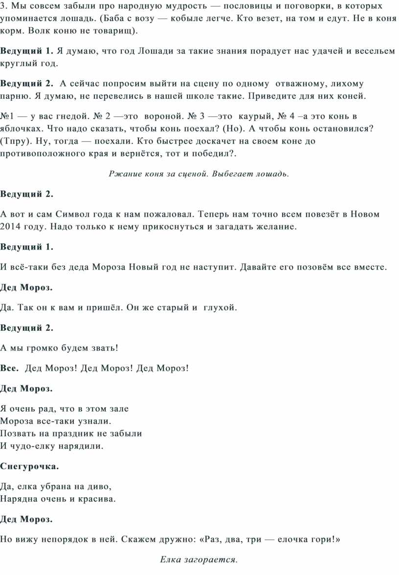 Ведущий 1. Я думаю, что год Лошади за такие знания порадует нас удачей и весельем круглый год.