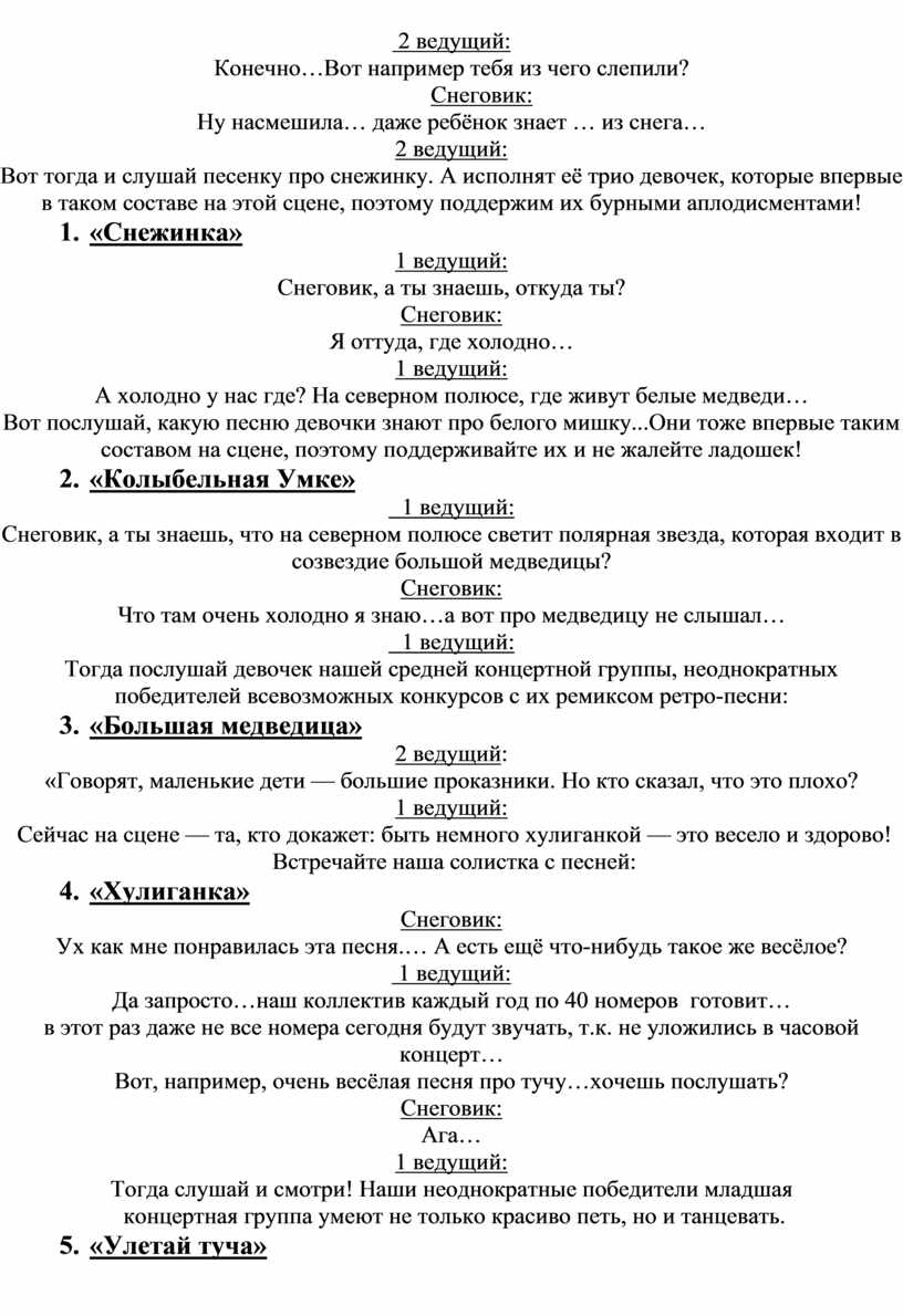 Вот тогда и слушай песенку про снежинку. А исполнят её трио девочек, которые впервые в таком составе на этой сцене, поэтому поддержим их бурными аплодисментами!
