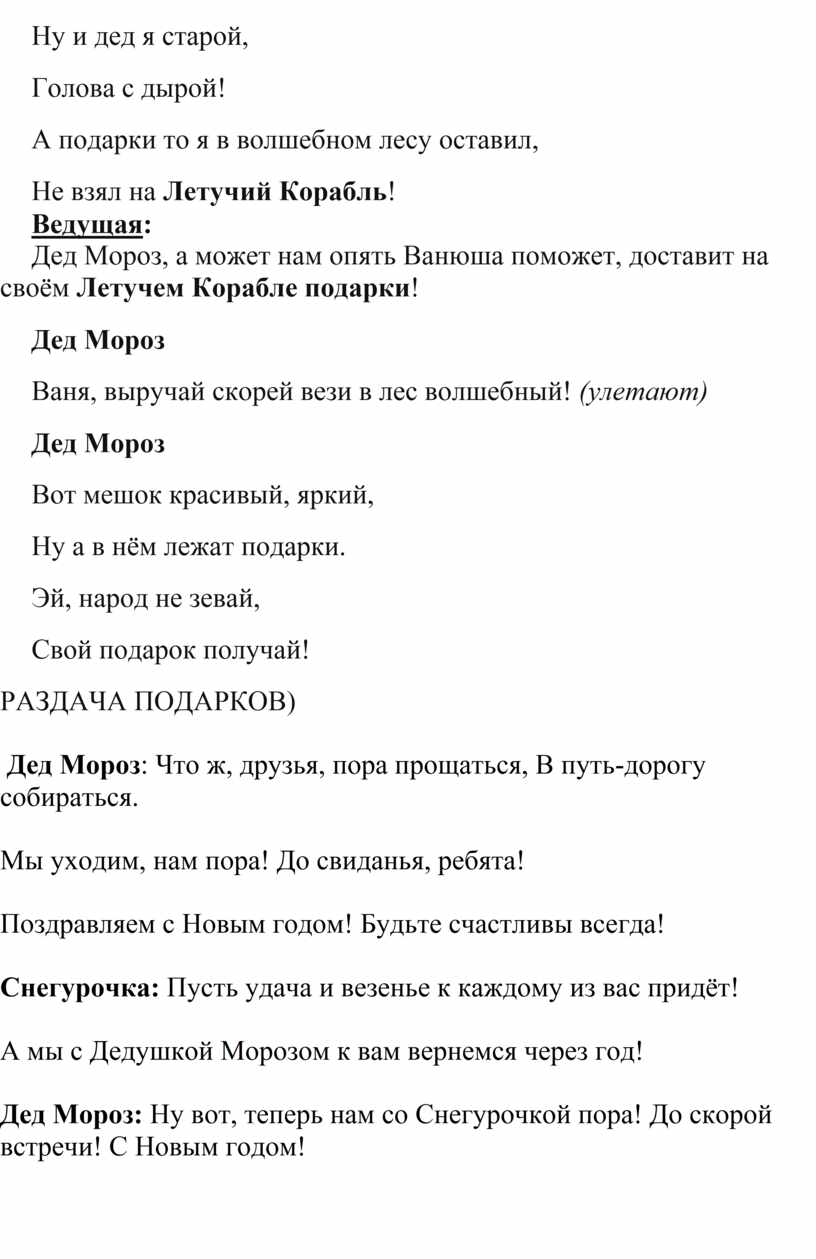 Дед Мороз: Ну вот, теперь нам со Снегурочкой пора! До скорой встречи! С Новым годом!