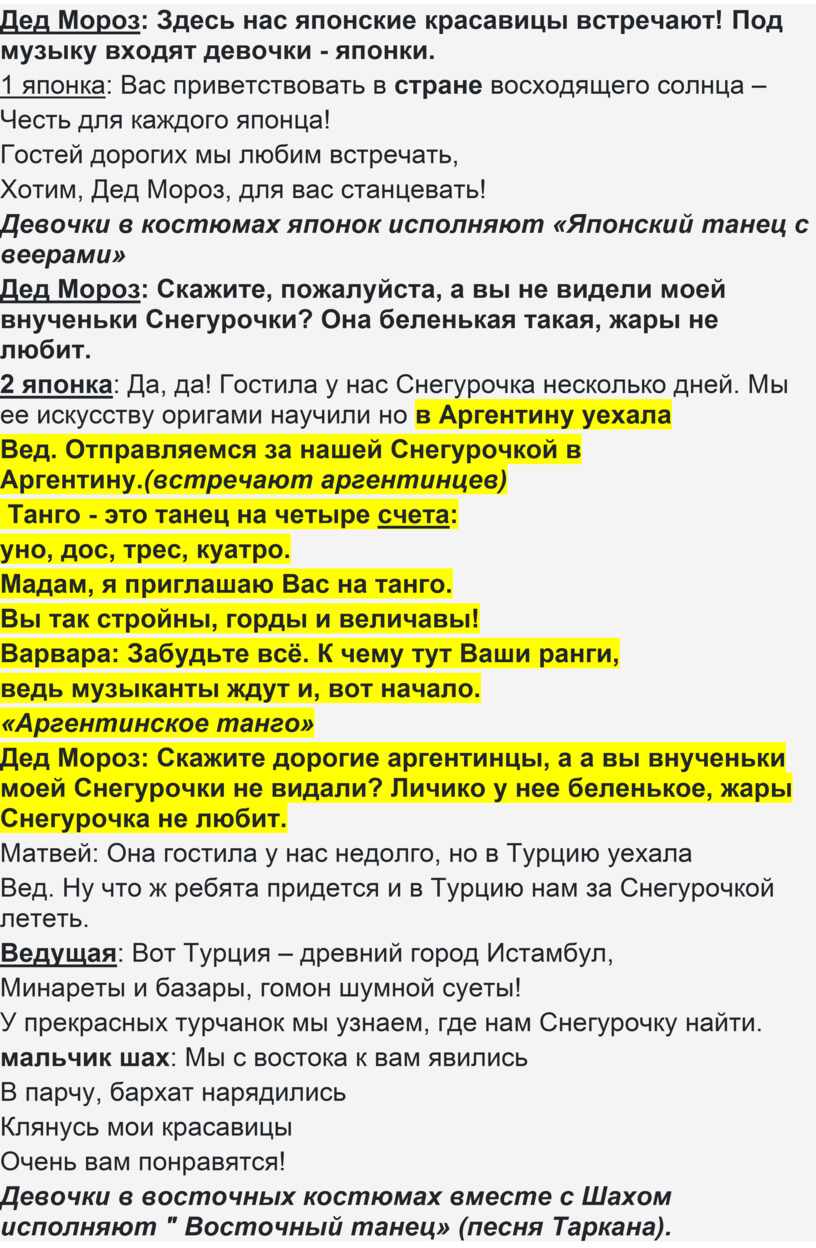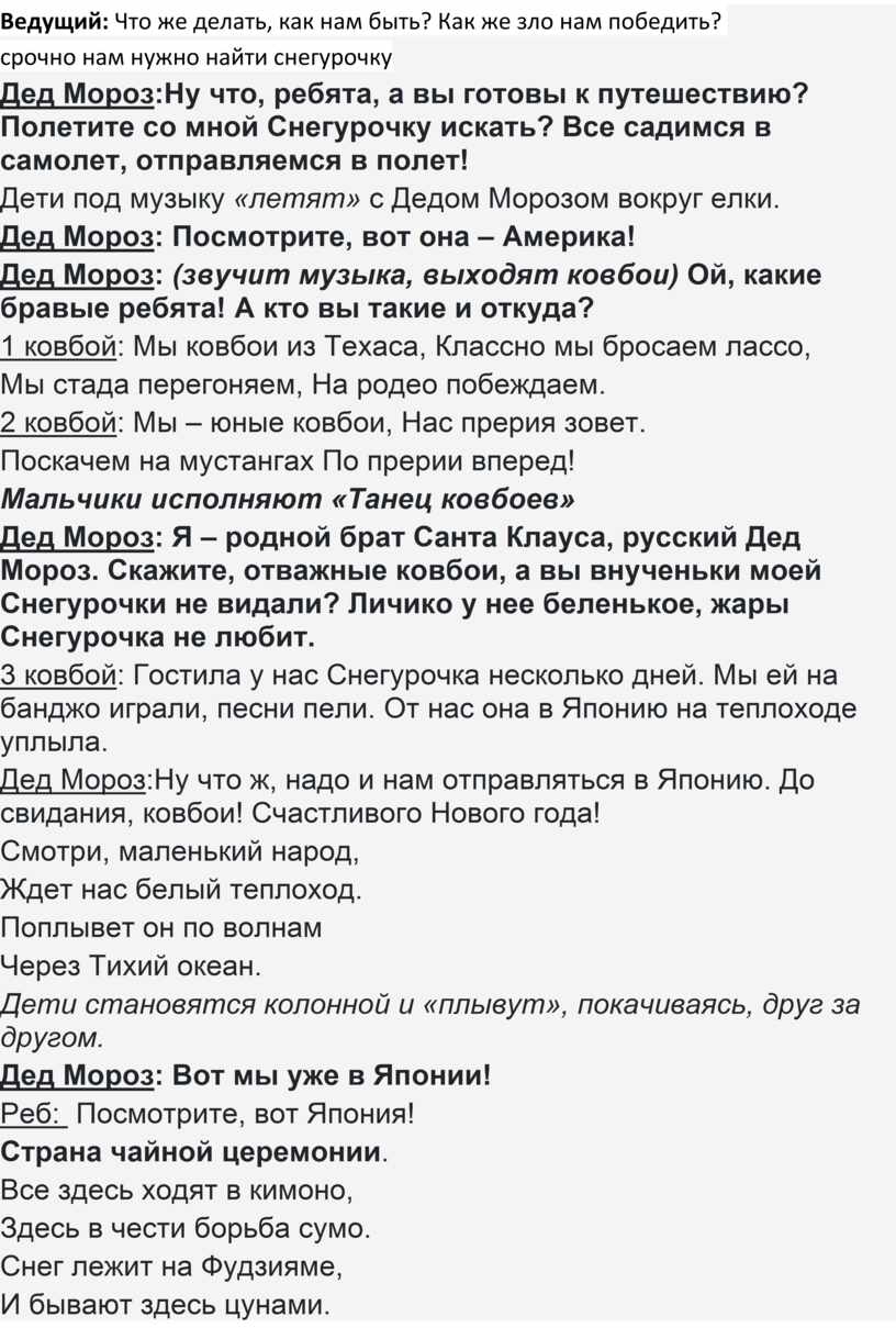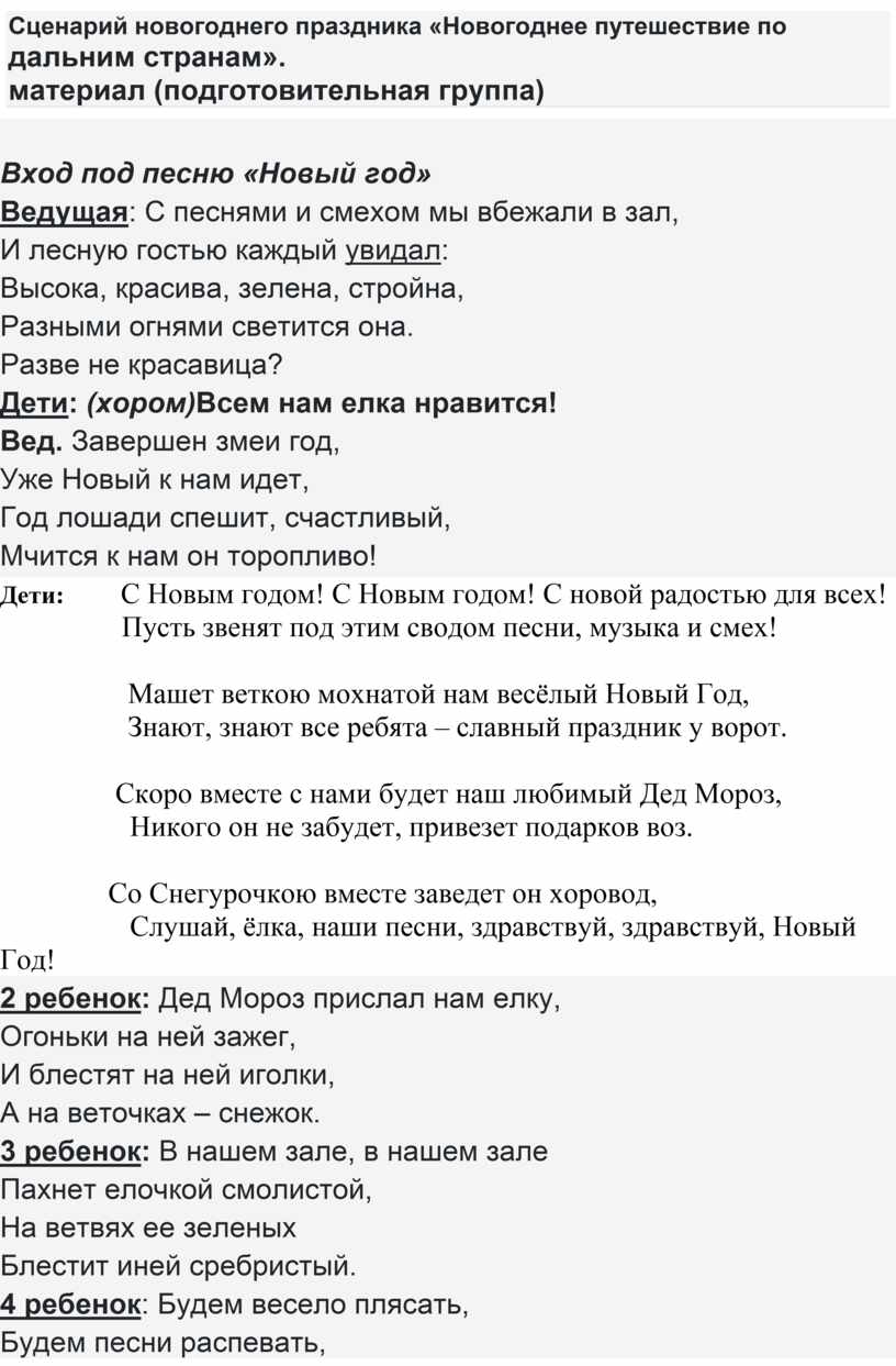 Сценарий новогоднего праздника «Новогоднее путешествие по дальним