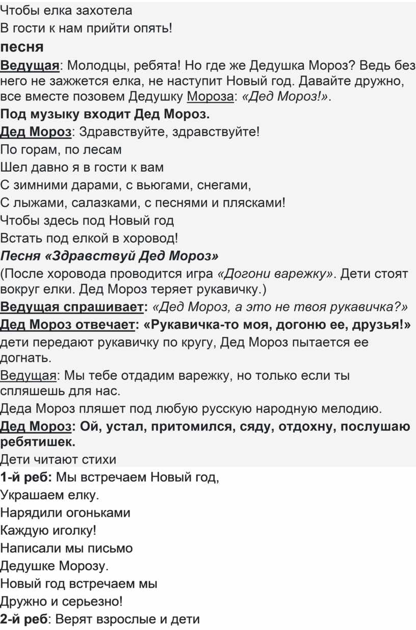 Ведущая: Молодцы, ребята! Но где же Дедушка Мороз? Ведь без него не зажжется елка, не наступит Новый год. Давайте дружно, все вместе позовем Дедушку Мороза: «Дед Мороз!».