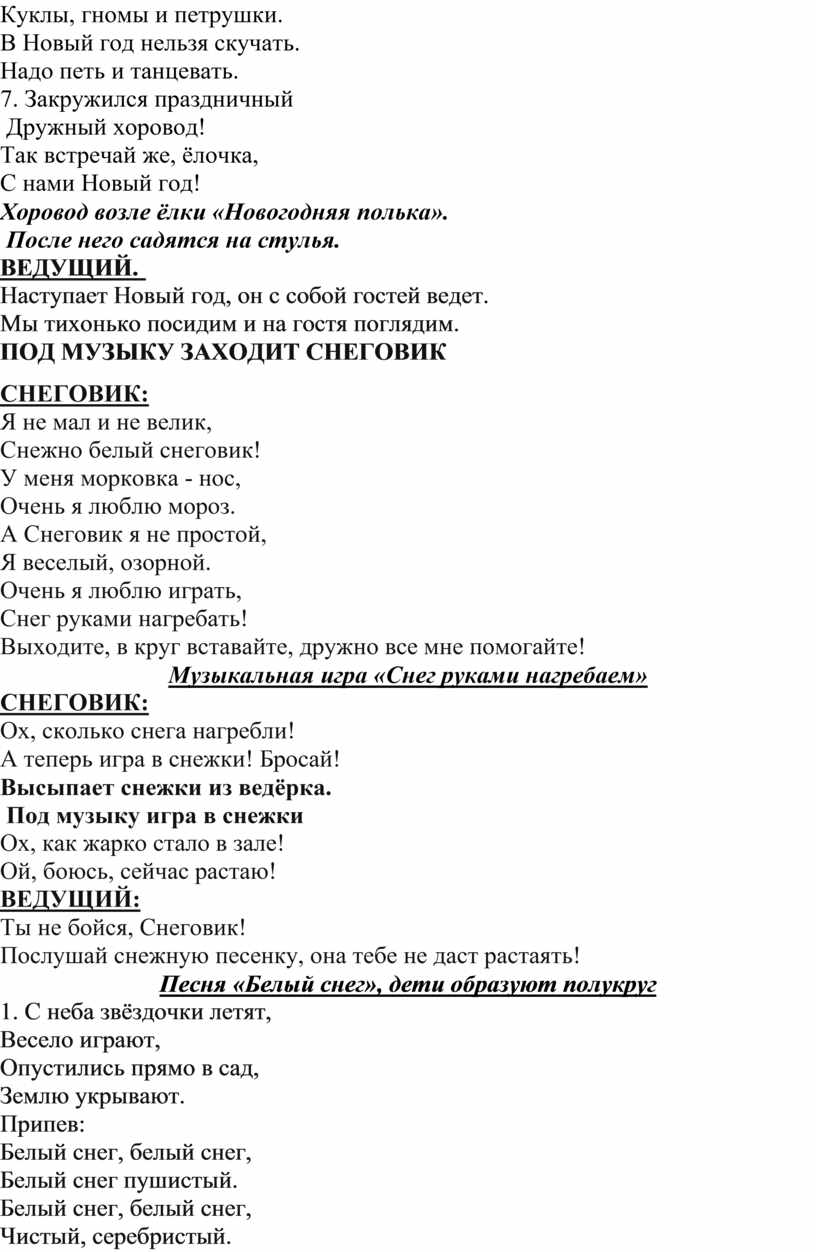 Песня «Белый снег», дети образуют полукруг