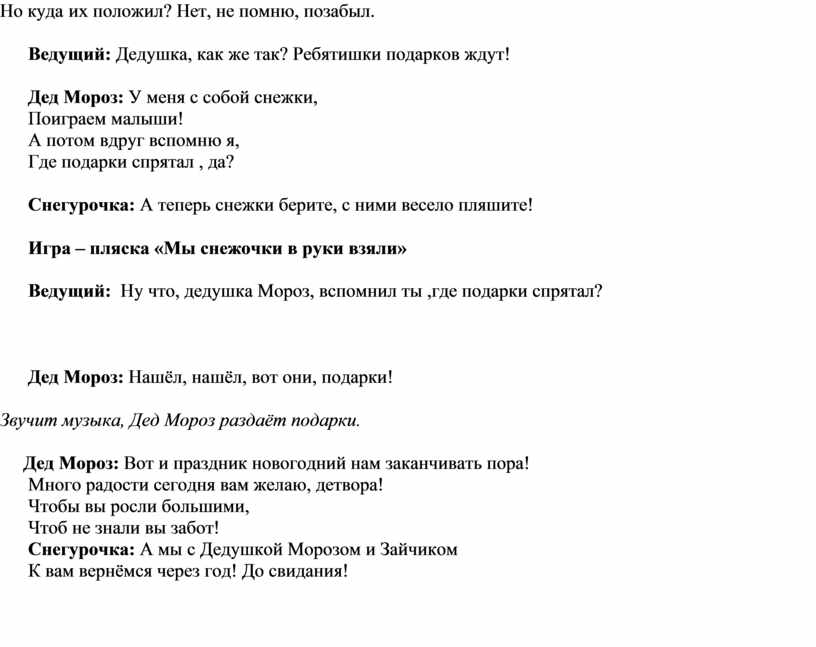 Ведущий: Ну что, дедушка Мороз, вспомнил ты ,где подарки спрятал?