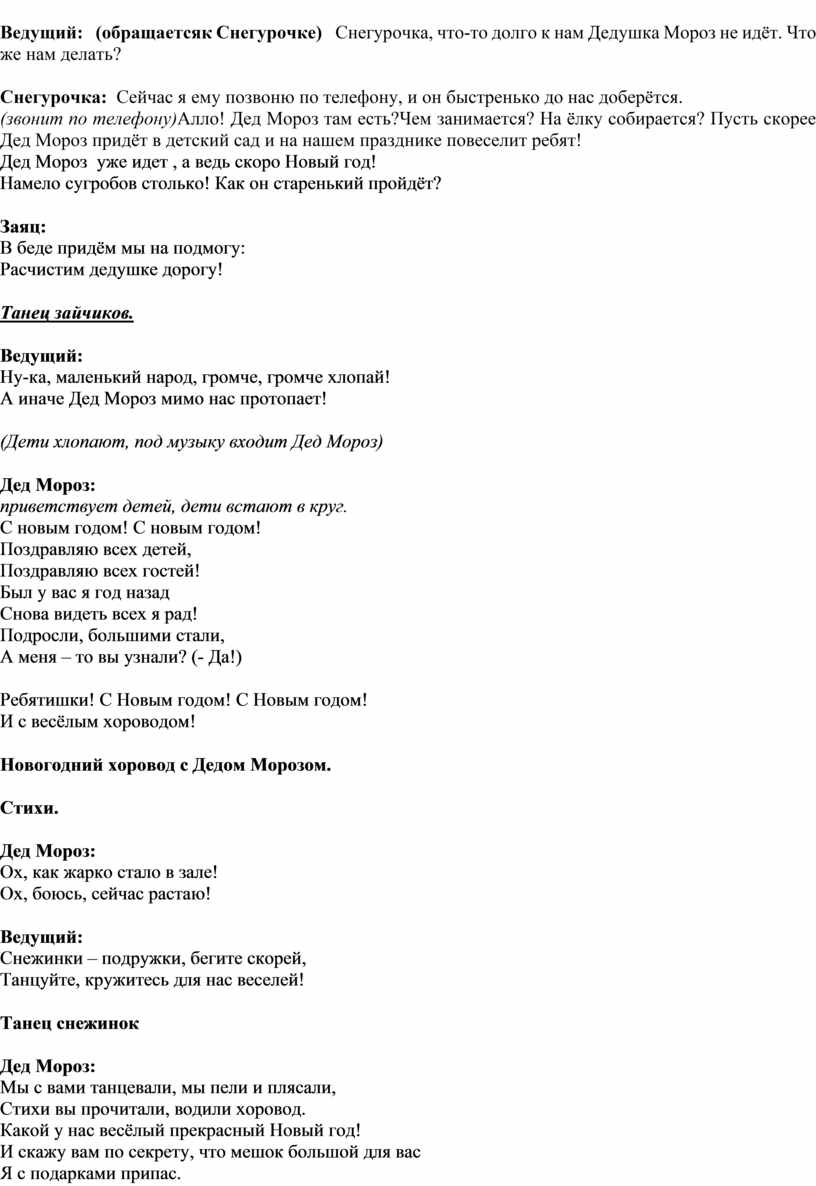 Сценарий новогоднего праздника для детей младшей группы