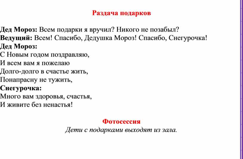 Ведущий: Дедушка Мороз, а ты что уже уходишь?
