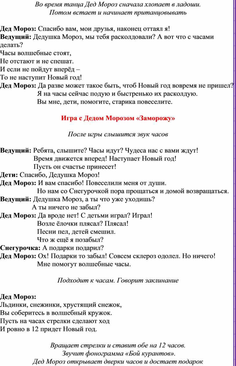 Ведущий: Дедушка Мороз, мы тебя расколдовали? А вот что с часами делать?