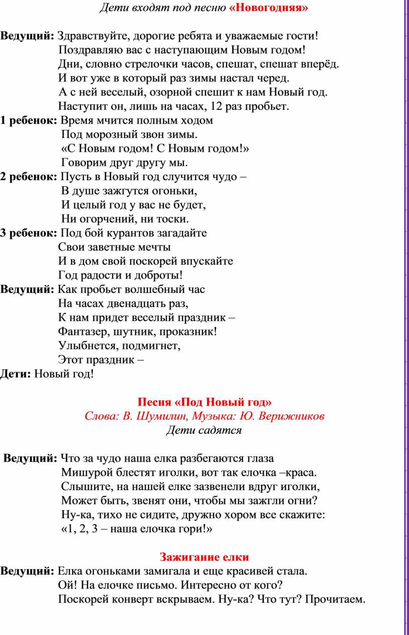 Сценарий новогоднего утренника